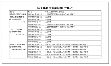 各駐車場の年末年始の営業時間の詳細につきましては、下記の画像をクリックしご確認お願いいたします。
